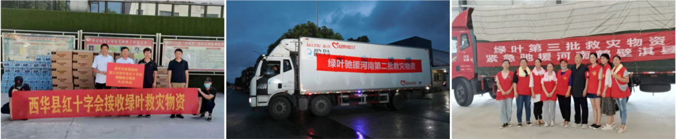 Since July 20, 2021, Henan Province has experienced rare heavy rainfall, and the flood disaster has touched the hearts of people across the country. After learning that Zhoukou, Hebi and other cities were in urgent flood conditions, dangerous situations occurred frequently, and the affected people were in short supply of daily necessities, Greenleaf urgently allocated three batches of disaster relief supplies on July 25, 27 and 29, respectively, to support the flood control and disaster relief frontline in Xihua County, Zhoukou City, Jun County and Qi County, Hebi City.