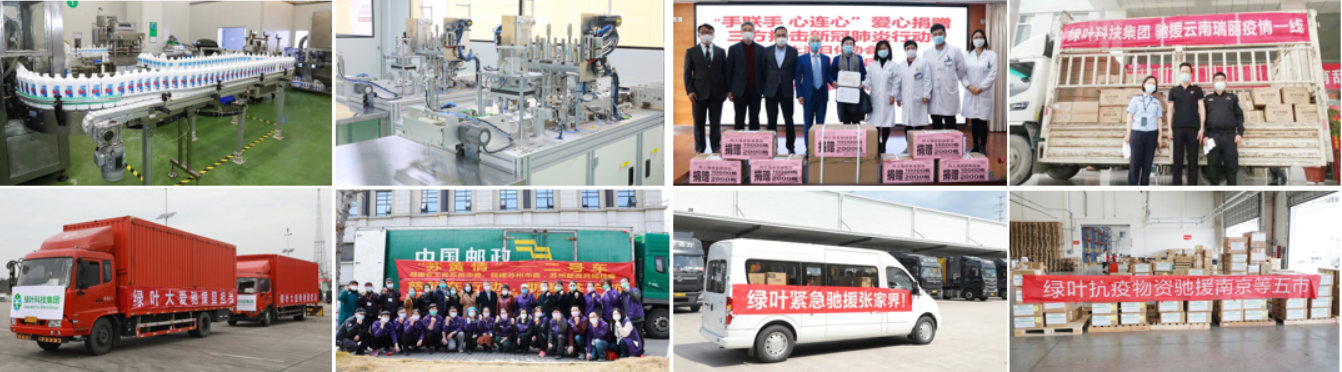 After the outbreak of the COVID-19 epidemic in 2020, Greenleaf immediately adjusted the production line of detergents and urgently produced epidemic prevention products such as 84 disinfectant and hypochlorous acid disinfectant. The first batch of disinfectants was produced on February 10, and the lipstick workshop was transformed into a mask production workshop. On February 28, the first batch of masks was officially put into production, relieving the pressure on the tight mask market supply. During the epidemic, Greenleaf took the initiative to donate money and materials to the hardest-hit areas many times, and "extended a hand and showed love" to medical staff and prevention and control personnel on the front line of the fight against the epidemic; afterwards, the epidemic rebounded in Xinjiang, Yunnan, Zhangjiajie, and Jiangsu. Greenleaf rushed to help and sent the most needed epidemic prevention materials to the local fight against the epidemic. Since the outbreak of the epidemic in 2020, Greenleaf has donated more than 13,700 boxes of epidemic prevention materials to the front line of the fight against the epidemic in various places, with a total amount of donated materials and funds exceeding 10 million yuan.